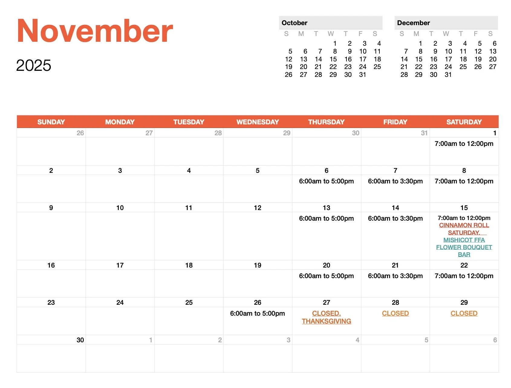 Saturday: 7 am - 12 pm